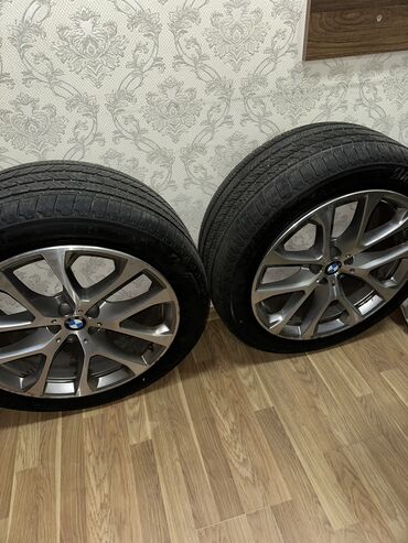 BMW orijinal disklər və şinlər dəsti - Disklər: BMW loqolu, 10-şüalı, gümüş rəng. Mərkəz ölçüsü və bolt yerləri BMW uyğunluğundadır (5 bolt). - Ölçü (təkər üzərində görünən): 20" (vizual olaraq ir...
