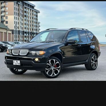 BMW X5 (E53) – qara rəngdə, 5 qapılı SUV. Hal-hazırda maşın çox ideal veziyyetdedir Qiymətdə real alıcı ilə razılaşma olunacaq Mühərrik və ötürmə: - Benzinli V8 4.4i (yan tərəfdə “4.4i” emblemi) ...Giriş•Qeydiyyat