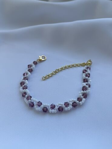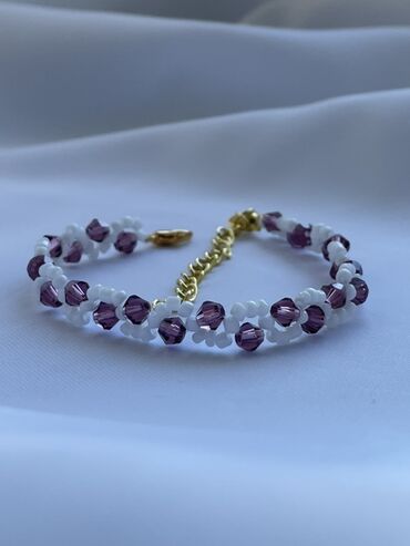 Çoxsıralı mirvari qolbaq - Material: tünd rəngli (tahiti tipli görünümlü) mirvari boncuklar və şəffaf kristal aralıqlar - Quruluş: 3 paralel sıra, geniş panel formasında - Rəng palitrası: benövşəy...