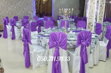 Digər materialBənövşəyi,Qırmızı,Firuzəyi rəngdə stul örtükləri və bantları