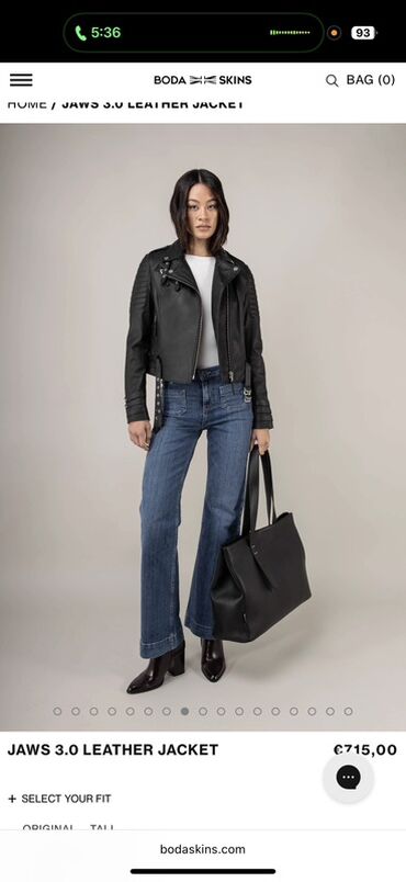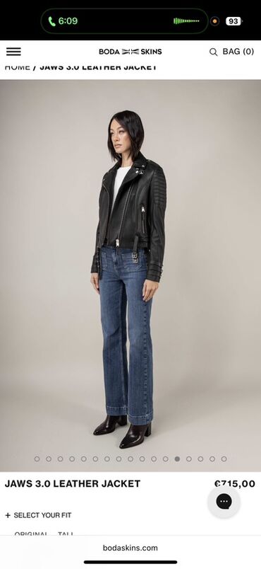 - Ölçü və model məlumatı: BODA SKINS etiketli, klassik dar biker kəsimi.