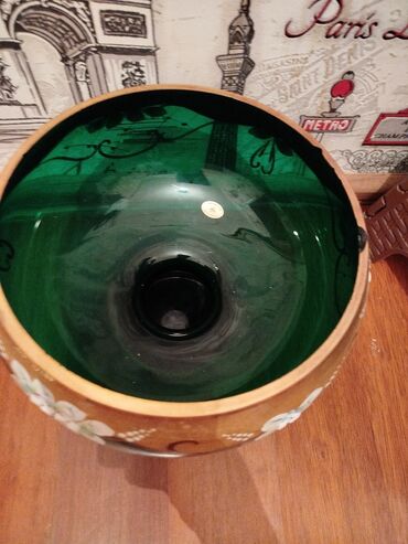 Yaşıl şüşədən hazırlanmış bu qablar qızılı naxışlar və ağ çiçək detalları ilə bəzədilmişdir. Bogema 1ededi 30azn