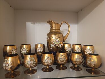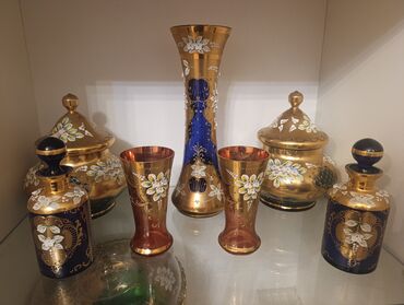 Qızılı naxışlı bədii şüşə dəst stekanlar 35 azn - yasil vazlar 50