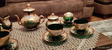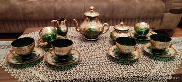 Çay dəsti, rəng - Yaşıl, Bohemia, 12 nəfərlik, Çexiya