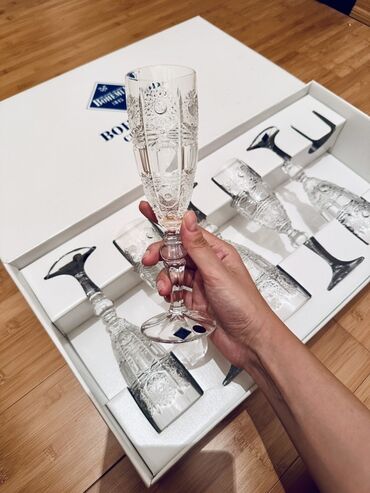 - Dizayn: əl işi naxışlı kəsimlər, parlaq və şəffaf kristal, klassik flüt formasında kasa; zərif boğaz və dayanıqlı ayaq