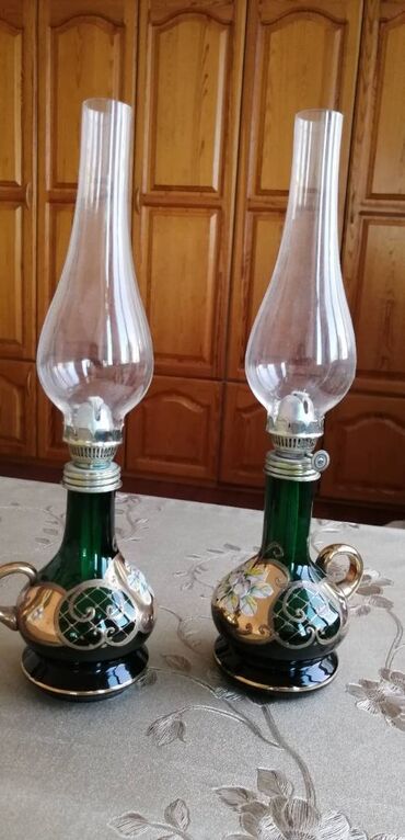 Pulsuz çatdırılmaBohemia kerosin lampaları. Sovet vaxtından qalıblar. Çox baha alınıblar. Əla vəziyyəttədirlər, təzə kimi demək olar. Hündürlüyu 39 cm. Biri 30 manat, ikisini bir yerdə 50 manata verirəm. Başqa fiqurlar və qablar da var. Profilimə girib baxa bilərsiniz. Real alıcıya da endirim olacaq.
