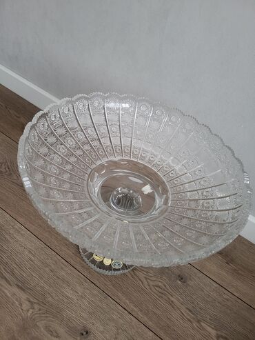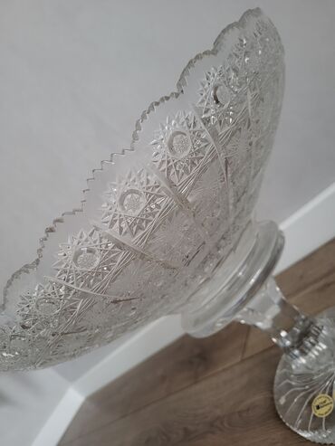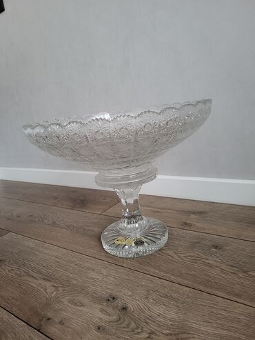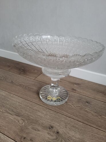 Bohemia kristal ayaqlı meyve qabi– əl işı ilə kəsilmiş qurğuşunlu kristal(yenidir istifade olunmayib)
