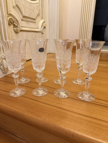 Qədəhlər – 6 ədəd Qiymət: 60 AZN Heç istifadə olunmayıb, vitrin üçün saxlanılıb. Yüksək keyfiyyətli və orijinal dizayna malikdir. Zərif görünüşlü, xüsusi günlər və ya hədiyyə üçün ideal seçimdir. Ə...