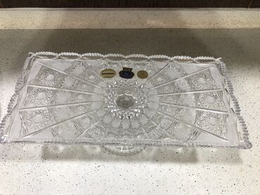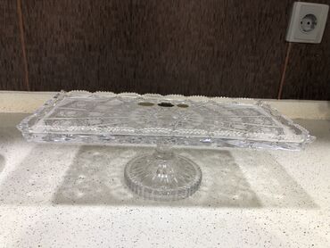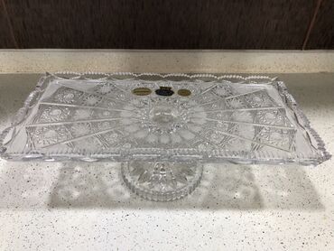 Bohemia kristalindən hazırlanmış ayaqlı servis boşqabı.