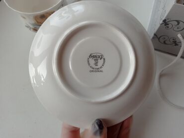 Marka/İstehsalçı Kahla (GDR) (Alman istehsalı) Parça sayı 6 (2 fincan, 2 nəlbəki, 2 boşqab) Vəziyyəti Yeni (istifadə olunmayıb) Əsas xüsusiyyətlər İnci (iridescent) effekti, Qızılı naxışlar, Rok...