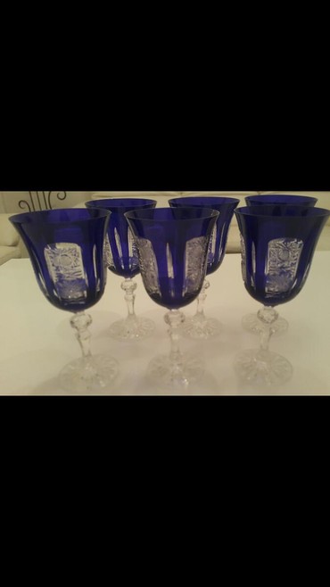Продаю необычные бокалы хрустальные 6 штук,высота 13 см, мало пользовалась ими, как новые, куплены в Латвии, им 40 лет, бесплатная доставка метро Гянджлик, метро Нариманов,Гянджлик мол!метро 28 ма...