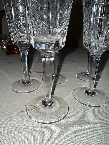 Məhsul: Kəsim naxışlı kristal şampan qədəhləri dəsti - Sayı: 6 ədəd - Material: 24% PbO tərkibli kristal (etiketdə göstərilib) - Üst hissə: Dərin kəsimli dekor – şüalı və romblı naxışlar, şəffaf p...