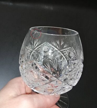 Kəsimli kristal brendi qədəhi 100% Qədimi Çexiya Xrustali. Özümündü nenemnen qalib satiram - Material: şəffaf, ağır kristal şüşə - Dizayn: əl işi üslubunda klassik kəsim naxışları (romb, ulduz və y...