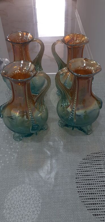 YeniDekorativ Şüşə Grafinlər. Həcmi 1 litr. 4 ədəd var. Декоративные Стеклянные Графины. Обьем 1литр. 4 штуки в наличии. Çatdırılma mümkündür. Доставка возможна.