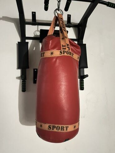 - Qırmızı asma boks kisəsi, üst hissəsi metal halqa və “SPORT” yazılı gücləndirilmiş qayışlarla