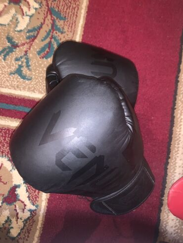 - Qara boks əlcəkləri: Venum brendi, iri loqo ilə. Qol bağlama hissəsi geniş, biləyi sabit saxlayan konstruksiya. Yastıqlanmış zərbə səthi, intensiv məşqlər üçün uyğundur.
