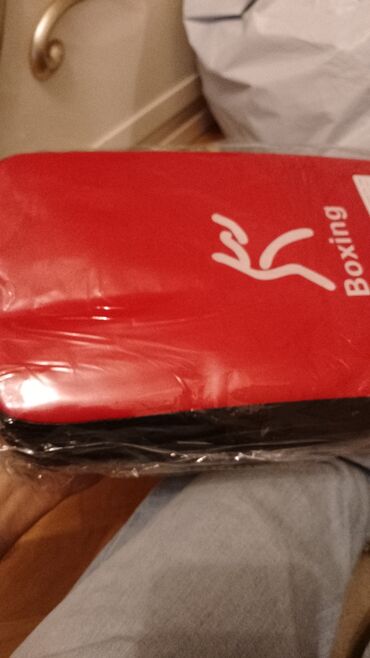 - Düz zərbə qalxanı: Qırmızı rəngli, “Boxing” yazılı, qara arxa hissə. Əldə tutmaq üçün arxa tərəfdə qayışlar mövcuddur (paketdə görünür). Məşqçi və idmançı üçün zərbələrin təhlükəsiz qəbuluna imkan verir.