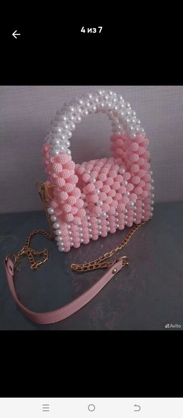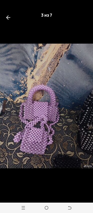 - Əl işi boncuk çantaları: iri inci effektli boncuklar və teksturalı xırda boncuklarla toxunmuş konstruksiya.