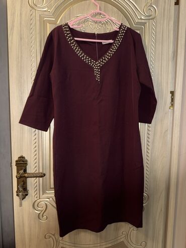 Bej rəngli qadın triko/şərqəlibi stilində paltar - Rəng: açıq bej, xırda nöqtəli tekstura - Material: yumşaq trikotaj (elastik, bədənə yatımlı) - Yaxa: qapalı/yüksək kruq yakalı - Qol: uzun, yüngü...