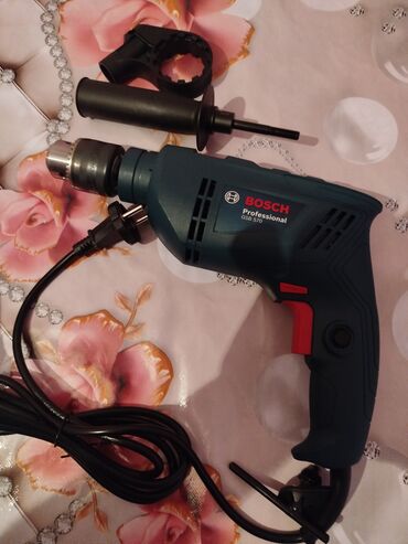 Elektrikli zərbəli matkap - Brend/model: “Алмаз” (Almaz) zərbəli matkap - Güc mənbəyi: 220V şəbəkə, kabel ilə - Quruluş: Tətikli işə salma düyməsi, istiqamət dəyişdirici (irəli/geri), zərbə rejimi...
