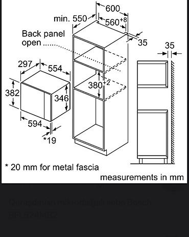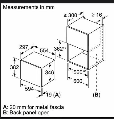 - Quraşdırma boşluğu: eni 560(+8), dərinlik 300 və daha çox, hündürlük 362(+3)