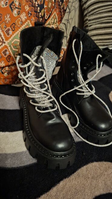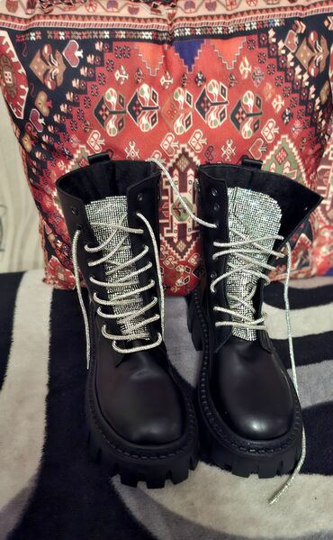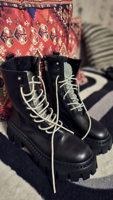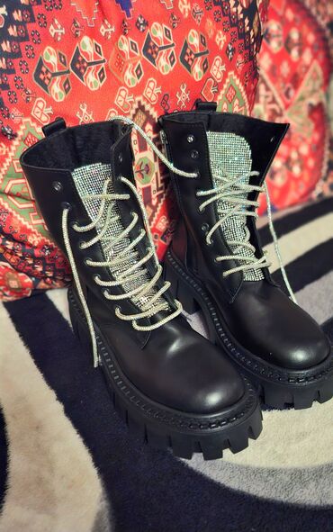 Чёрные женские полусапожки из ИСТАМБУЛА, ,с блестящими шнурками, размеры 37, 39, 40, большемерки