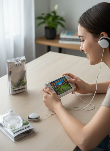 Panasonic qulaqüstü klipsli aux qulaqlıq. Telefon, iPod, MP3 pleyer, portativ konsollar və digər cihazlarla uyğundur. Gündəlik istifadə, musiqi dinləmə və portativ oyun konsolları ilə səs üçün idealdır.