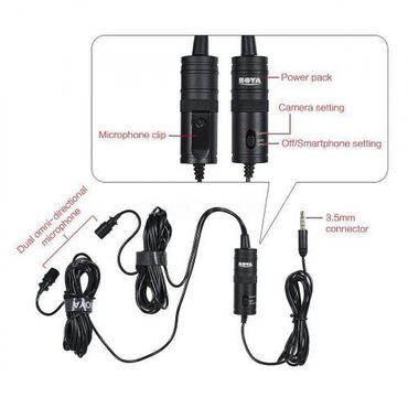 Boya BY-M1DM cüt lavalier mikrofon, kameralar, videokameralar, kompüterlər, telefonlar, səs yazıcılar kimi bir çox cihazla uyğun gələn yüksək keyfiyyətli ikili mikrofon lavalier mikrofondur. Kabel uzunluğu 4 metr olduğu üçün geniş bir ərazidə işləməyinizə imkan verir.