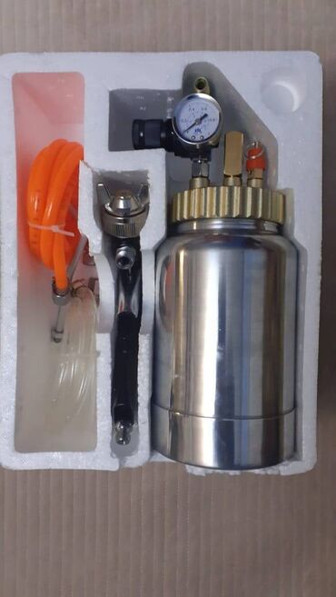 Pnevmatik boya tapançası – üstdən qidalanan metal boyaq qablı model. real aliciya endirim var Xüsusiyyətlər: - Marka: ASTURO (sap üzərində qeyd olunub) - Üst hissədə metal boya konteyneri; daxili t...