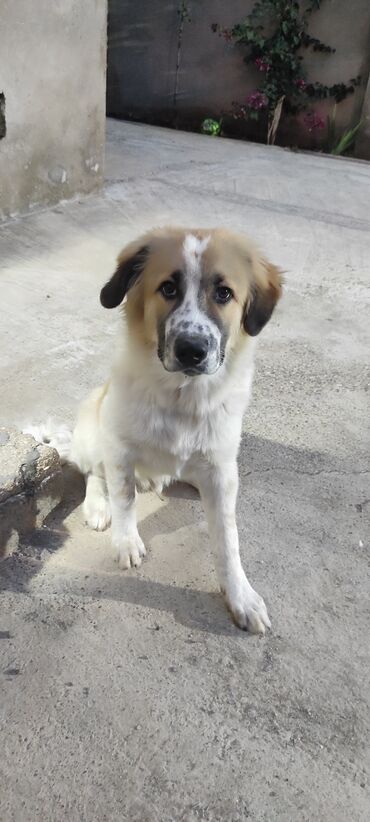 İt balası – böyük cins heyvan (çoban tipi) - Cins tipi: iri həcmli, çoban/ovçu tipli it (şəkillərdə ana ilə birlikdə) - Rəng: ağ-qəhvəyi, üzdə qara maska, sinə və pəncələr ağ - Yaş qrupu: baladır ...