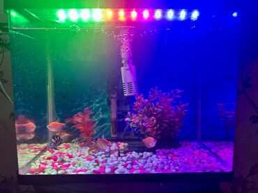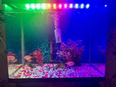 Satılır: Akvarium Komplekti (Bütün Ehtiyaclar ilə Birlikdə) Akvarium Həcmi : 40 litr Akvarium içində balıq sayı : 8 Balıq növü : Sakit,vəhşi balıqlar deyil. Ev şəraitində balıq saxlamaq istəyirs...