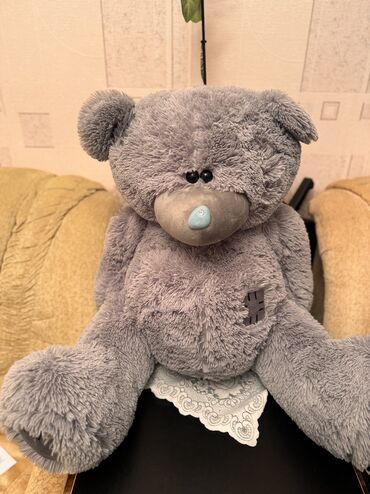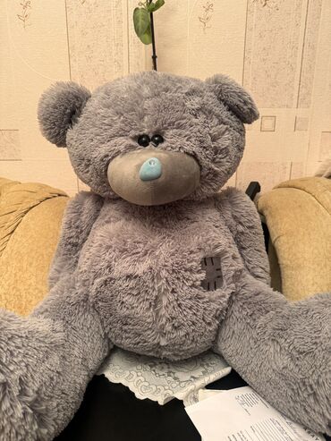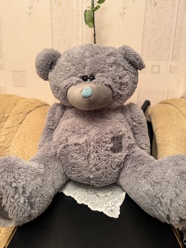 Böyük ölçülü, boz rəngli plyuş ayıcığ.
