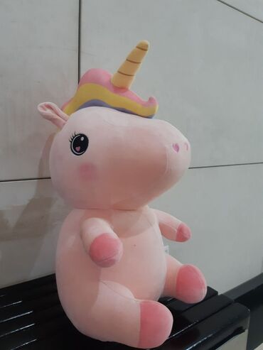 Oyuncaq unicorn – yumşaq plyuş 5 azn - Rəng: açıq çəhrayı bədən, göy qurşağı rəngli yalı və quyruğu - Material: yumşaq plyuş, toxunması rahat - Dizayn: parıltılı çəhrayı dırnaqlar və oturacaq hiss...