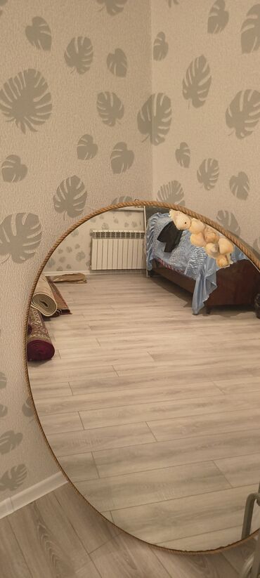 Dairəvi divar güzgüsü - Forma: dairəvi - Çərçivə: təbii tonlarda kəndir/kanıt ip bəzəkli kənar - Rəng: neytral, açıq şüşə tonu - Üslub: boho/skandinavi; minimal interyerlərə, yataq otağı, qonaq ot...