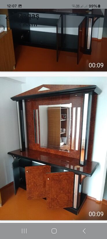 Razılıq yolu ilə endirim edilir. Əlaqə üçün 055 600 75 20 Klassik üslubda ağac vitrin və konsol güzgü dəsti - Material: təbii ağac əsaslı, zəngin oymalar və rellyefli dekor elementləri - Rəng: is...