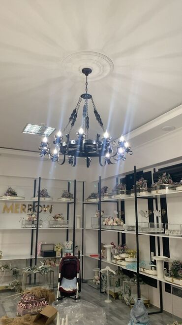 - Montaj: tavan rozetkası və möhkəm zəncir asqısı; hündür tavanlar üçün uyğundur