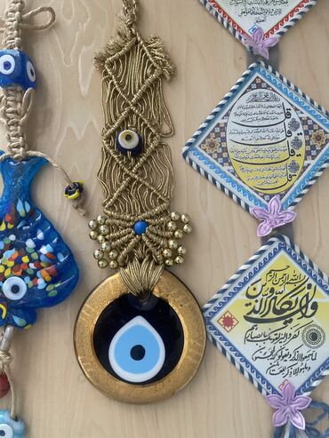 Əl işi, nazar boncugu , sifarişlə hazırlanır 5-12 sm ölçüdə . Həm evdə ,maşında və uşağ beşiyi üstünnən asmaq olar . Аксессуар для дома ,машины ,а также на кроватку малышу . Возможен заказ разного ...