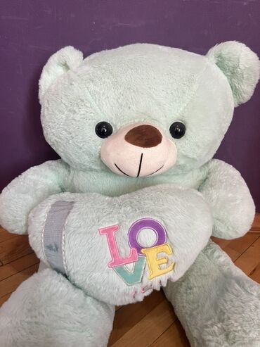 - Qucağında “LOVE” yazılı ürək formalı yastıq-applikasiya (rəngli hərflər)
