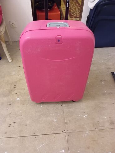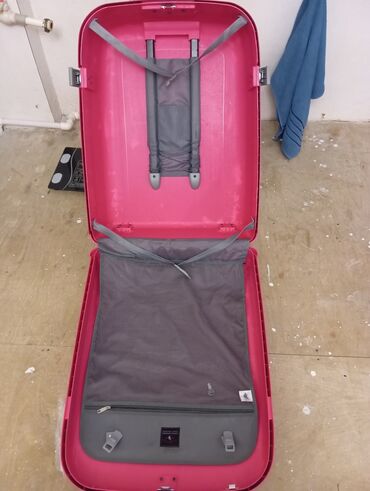 Parlaq qırmızı rəngdə, dəbli görünüşlü çantası. Qısa tutacaqları var. Səyahət və ya idman üçün əlverişlidir. сумка чемодан на двух роликах что очень удобно нести за ручку , очень вместительная ,мно...