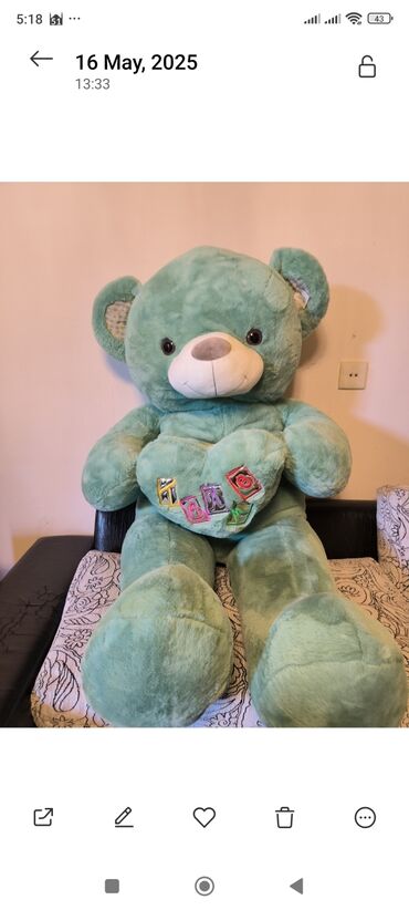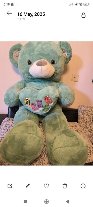 - Ölçü: çox iri boy (divanda oturarkən ayaqları aşağı sallanan, tam qucaqlamalıq)