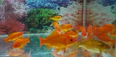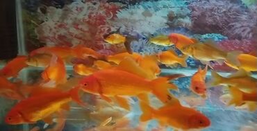 Akvarium üçün qızıl balıqlar - Növ: Qızıl balıq (Carassius auratus) – müxtəlif quyruq formaları və rəng tonları (parlaq narıncı, qızılı, tünd ləkəli). - Ölçülər: təxminən 5–12 sm arası fərdlər gör...