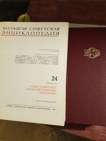 Продается БСЭ (Большая Советская Энциклопедия) в 30-ти томах 31книга, (24-ый том в 2-х книгах). Последнее издание, в хорошем состоянии. Цена 15 АЗN каждая книга. тел.