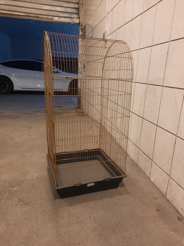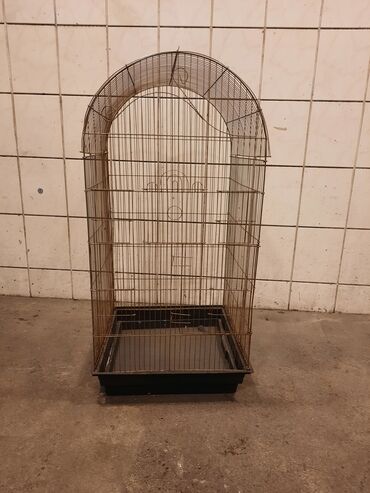 Böyük quş qəfəsi. İdeal vəziyyətdədir. Şəkildə sağda göstərilən böyük qəfəs satılır; soldakı kiçik ağ qəfəs daxil deyil. - Metaldan geniş qəfəs, üst hissəsi qövs formalıdır, yan və ön qapıları var....