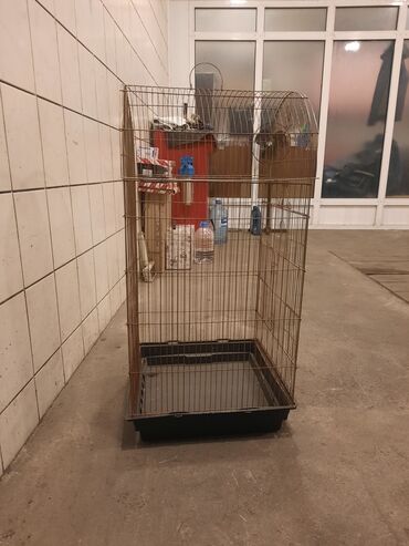 Böyük ölçülü quş qəfəsi - Material: möhkəm metal tor, mavi rəngli karkas; alt hissə plastik vannadan ibarətdir. - Ölçü: hündür, geniş və dərin konstruksiya (orta və böyük ölçülü quşlar üçün rahatd...