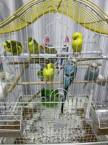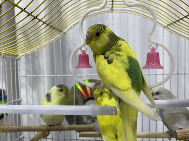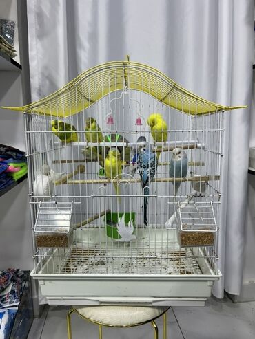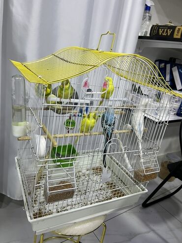 Quş üçün qəfəs İçərisində parakeet cinsi 4 ədəd quş var 2 dişi 2 erkək