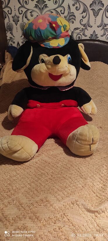 Böyük ölçülü yumşaq oyuncaq – it balası fiquru - Ölçü: təxminən 1 metr hündürlükdə iri plyuş oyuncaq - Material: yumşaq, tüklü plyuş; içlik sıx və formasını saxlayır - Dizayn: qəhvəyi-qum rəngli i...