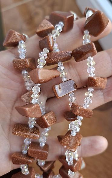 Anvantyurin daşları və kristal muncuqlardan hazırlanmış boyunbağı və qolbaq dəsti.