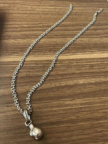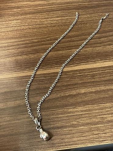 Gümüş rəngli kişi boyunbağı – boks əlcəyi asqılı