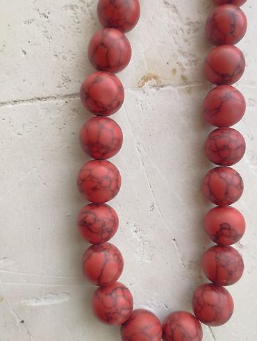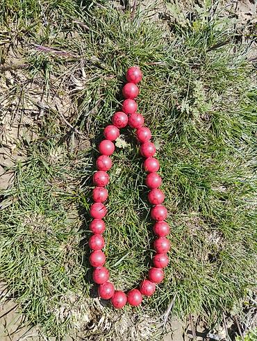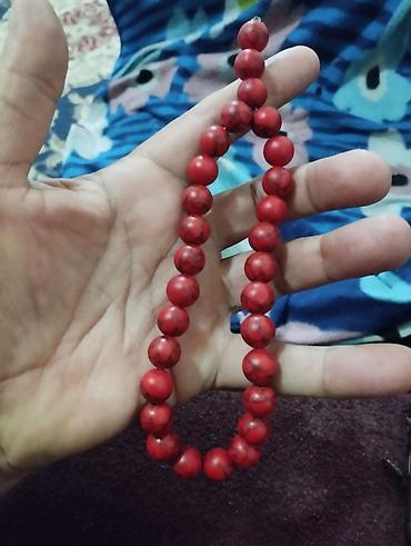- Material: hamar səthli, damar naxışlı qırmızı muncuqlar (yuvarlaq formalı)