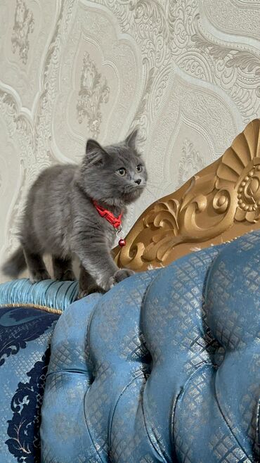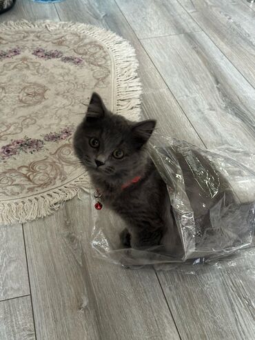 Britan tipli boz bala pişik Qum terbiyesi var qurd dermani verilib 2 ayligdir. - Rəng: tünd boz (bərk, vahid rəngli). - Yunu: qalın, yumşaq və tüklü. - Gözlər: iri, ifadəli sarımtıl-şaftalı tonlard...